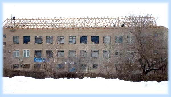 Почин, помнится, сделал Гауэз Торсанович Нурмухамбетов. Одним из первых его начинаний была замена крыши на здании бывшего райкома партии и райисполкома. Затем сменили крышу над собой казначейство, РОВД, может, ещё кто-то, кого подзабыл. И вот пришел черед перейти с плоской на двухскатную крышу и зданию РУТа, районного узла телекоммуникаций, кто запамятовал, как расшифровать сию аббревиатуру. Монтаж новой крыши уже ведется, несмотря на всякие зимние неудобства. Заодно начат и ремонт долго остававшегося не полностью востребованным третьего этажа.